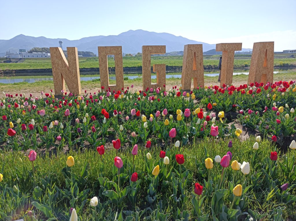 直方チューリップフェア会場を撮影